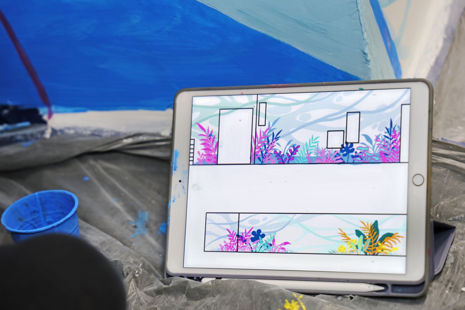 W założeniu aranżacja malarska miała emanować żywymi barwami, tworząc harmonijną kompozycję pejzażową – wyjaśnia dr hab. Iwona Szpak-Pawłowska, prof. UMK, która sprawuje opiekę nad Poradnią Projektowania Murali YUFE i nad projektem w OAS "Kotłownia". – Dynamiczne elementy roślinne, liście i kwiaty zostały stylizowane, w duchu układu płaskich plam barwnych, sugerując ruch i energię.
